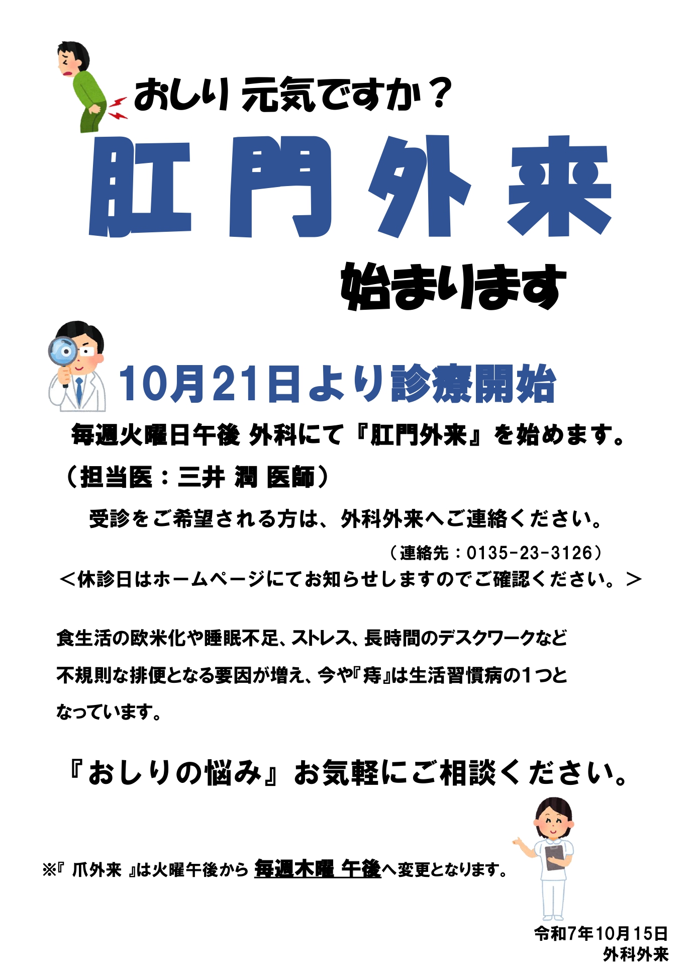 肛門外来 診療開始のお知らせ